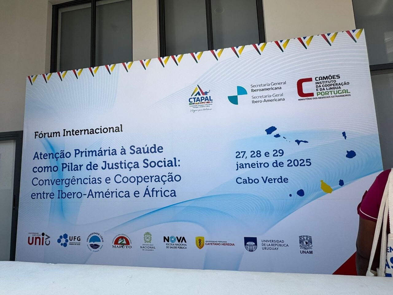 O Fórum Internacional de APS como pilar de justiça social, realizado no período de 27 a 29/01/2025, na Universidade de Cabo Verde, em Praia, reuniu especialistas, pesquisadores e profissionais da saúde para discutir equidade e justiça social na Atenção Primária à Saúde. O fórum foi realizado de forma presencial, com transmissão ao vivo no Youtube. A abertura do evento contou com a participação de autoridades de cada país/instituição (reitores e diretores) de ensino superior que compõem a equipe do CTAPAL, além da ministra da Saúde de Cabo Verde, Filomena Gonçalves.